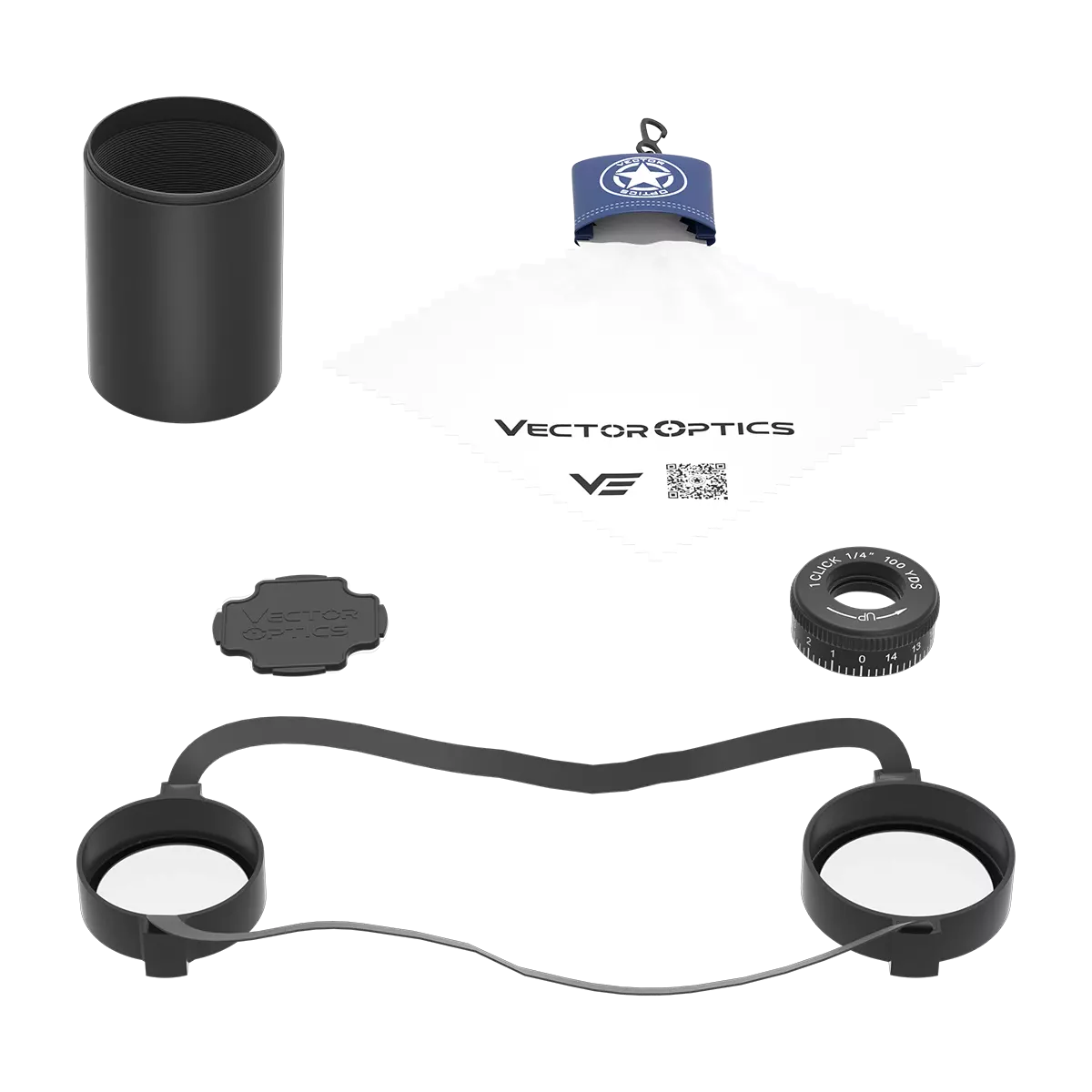 - Αξεσουάρ: Ένα ζευγάρι Picatinny 30 mm δακτύλιοι διόπτρας, καπάκια φακών, πανί καθαρισμού κ.λπ.