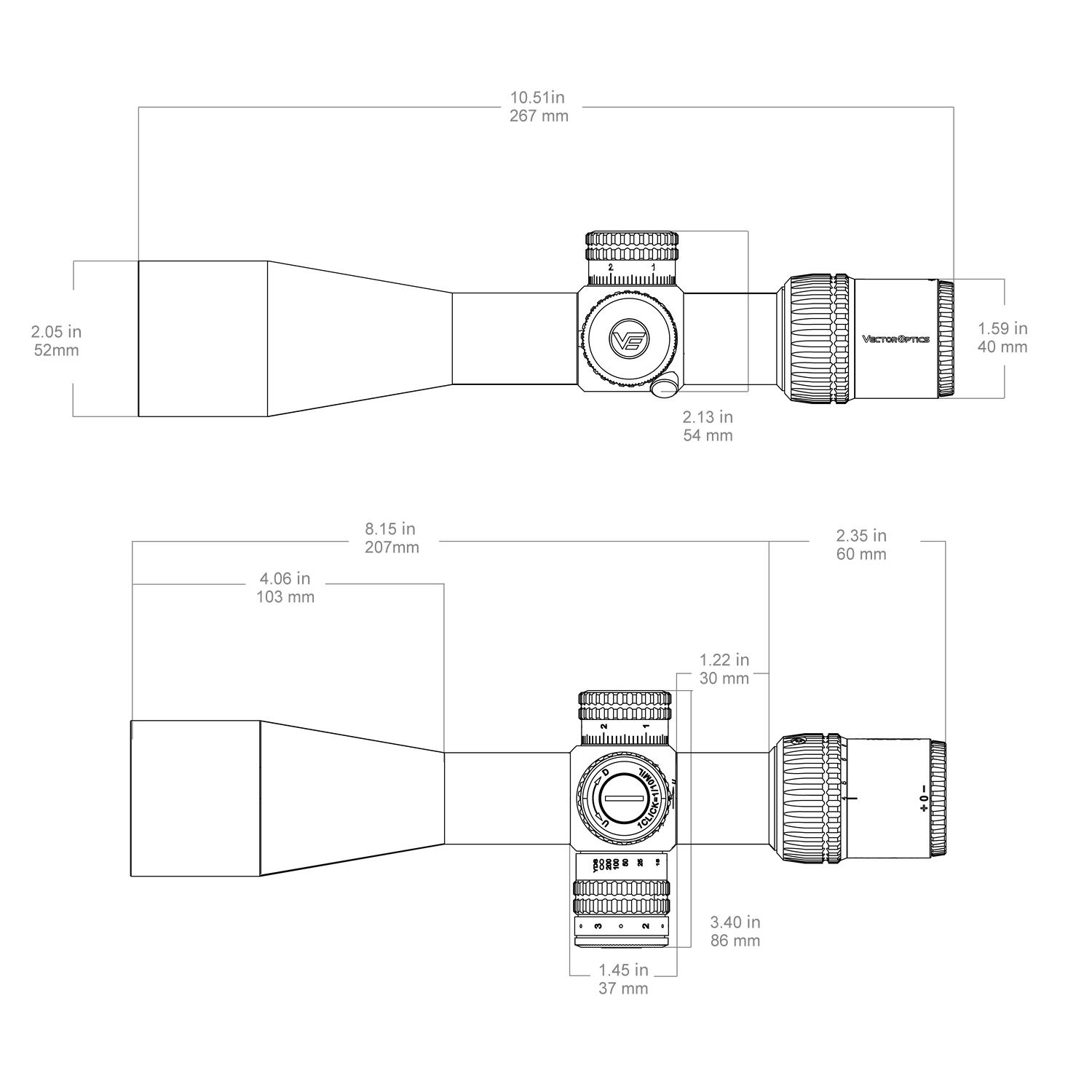 • Μονοσωλήνιο 30 mm, εξαιρετικά κοντό 268 mm 10,5 ίντσες, ρύθμιση 1/10 MIL 1 cm με σύστημα κλειδώματος πυργίσκου